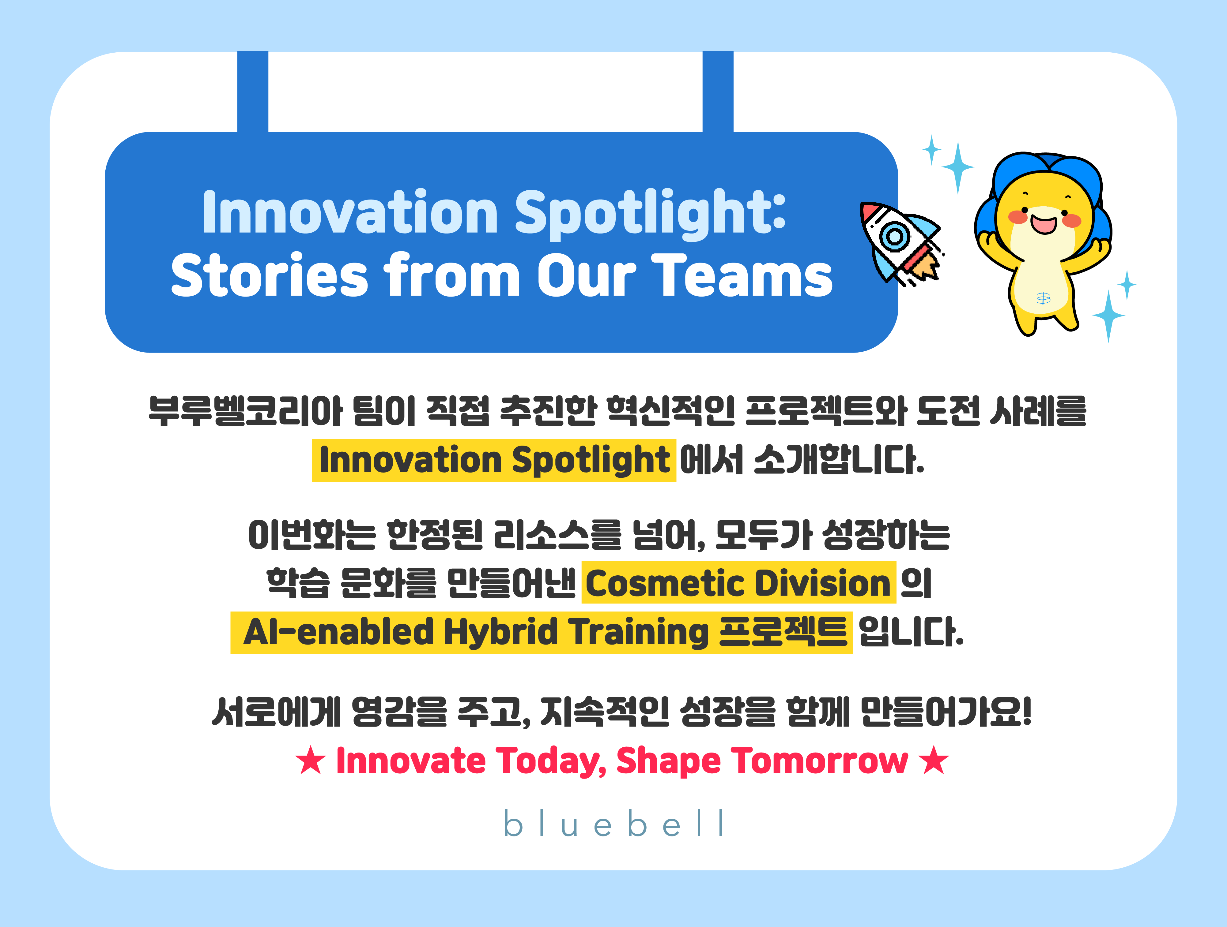 ์ด ์ง๋ฌธ์ด ์๋ก์ด ์ฌ์ ์ ์์์ด์์ต๋๋ค. ์ฌ๊ธฐ์ โAIโ, โํ์ด๋ธ๋ฆฌ๋โ, โ์ด๋ ธ๋ฒ ์ด์ โ์ด๋ผ๋ ํค์๋๊ฐ ๋ํด์ง๋ฉฐ, ๋ถ๋ฃจ๋ฒจ์ฝ๋ฆฌ์์ ํ์ต ๋ฐฉ์์ ์๋กญ๊ฒ ๋ฐ๊ฟ ์ ์๋ 'AI-enabled Hybrid Training' ํ๋ก์ ํธ๊ฐ ํ์ํ์ต๋๋ค.